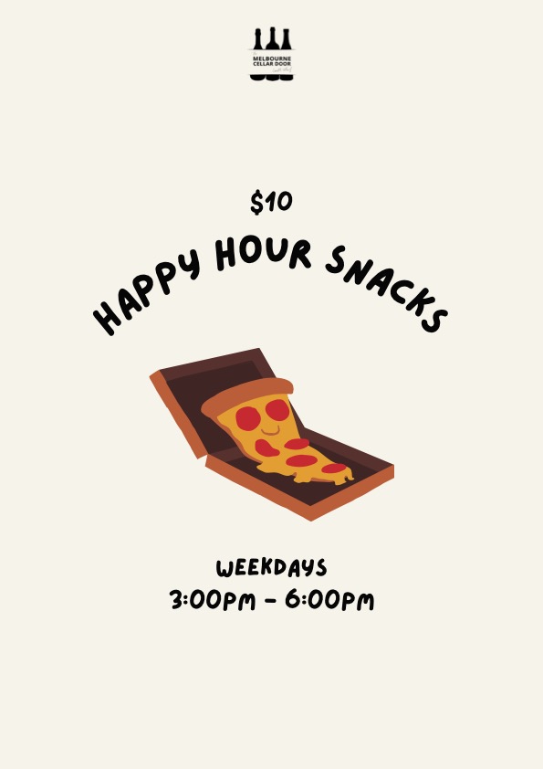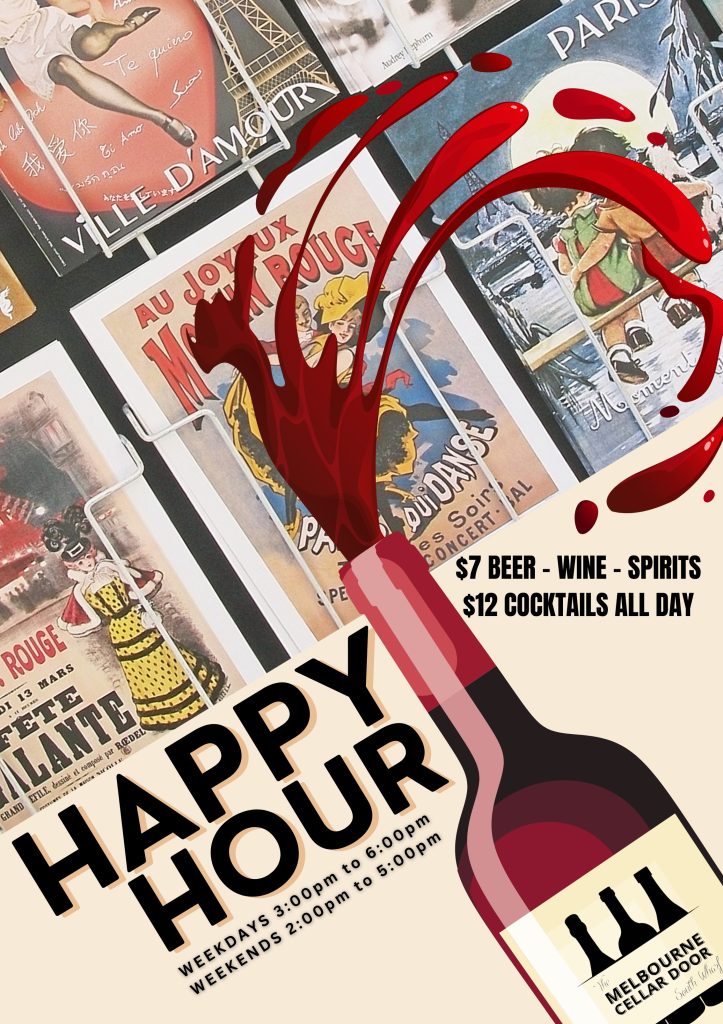 Unwind at Melbourne Cellar Door with our Happy Hour specials — the perfect way to ease into the evening or kick off your weekend.